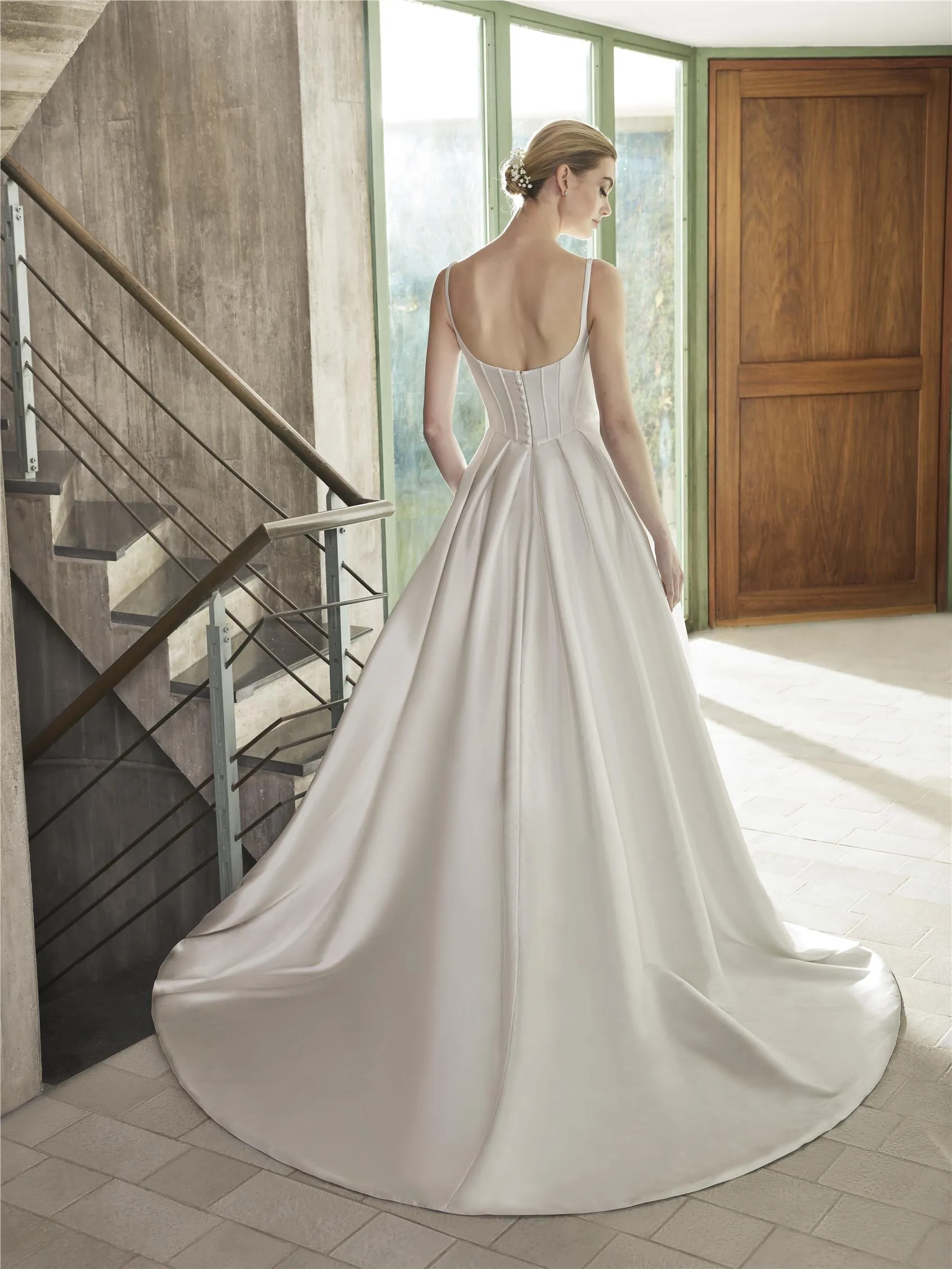A princess gown with a sweetheart neckline, in soft mikado, creating a dramatic and luxurious statement, perfect for an elegant, romantic celebration.